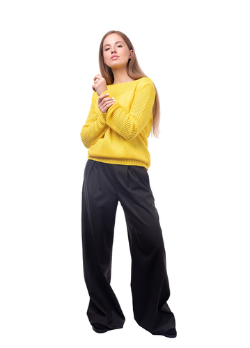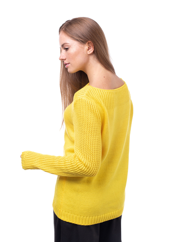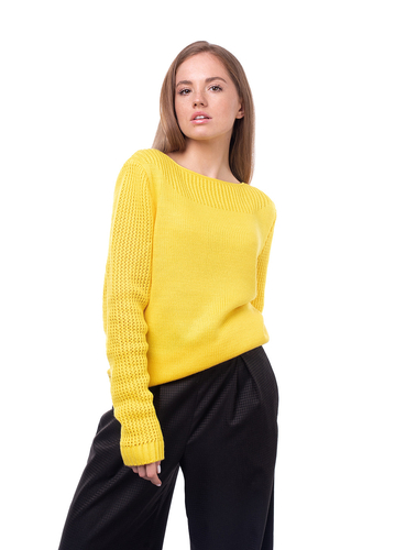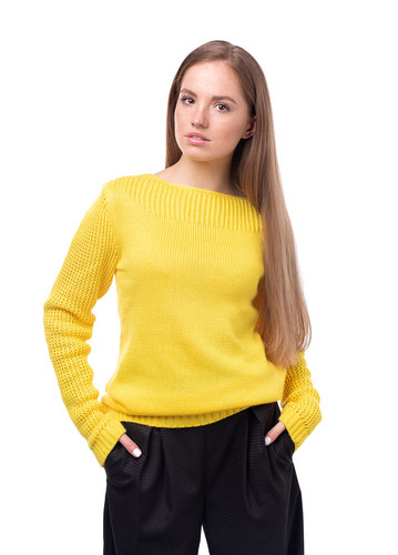 Стильний жіночий джемпер з вирізом горловини "лодочка" і ажурними рукавами