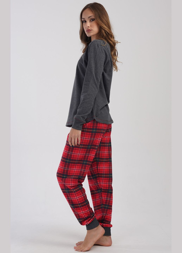 Темно-сіра всесезон піжама з начосом жіноча (лонгслів, штани) лонгслив + брюки