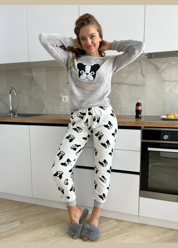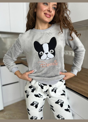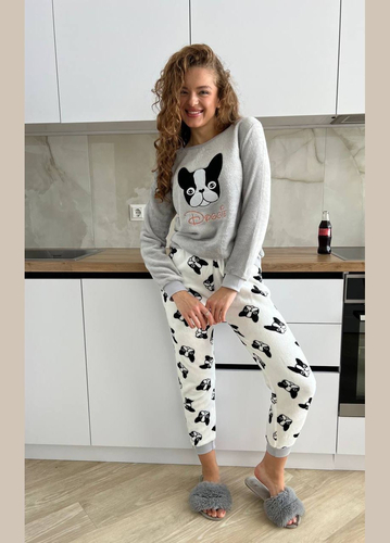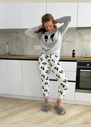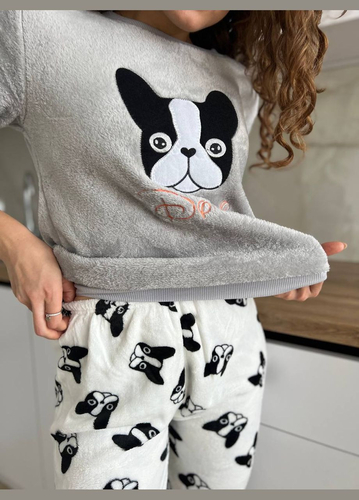 Сіра всесезон ніжна махрова піжамка песики кофта + брюки