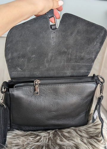 Ширина 25см, висота 18см, ширина дна 9см. Всередині є перегородка на змійці, 2відділення і кишені. В комплекті є 2ручки-довга регулюється, максимально 125см і коротка на плече 56см. Дуже зручна модель на кожний день середнього розміру.
